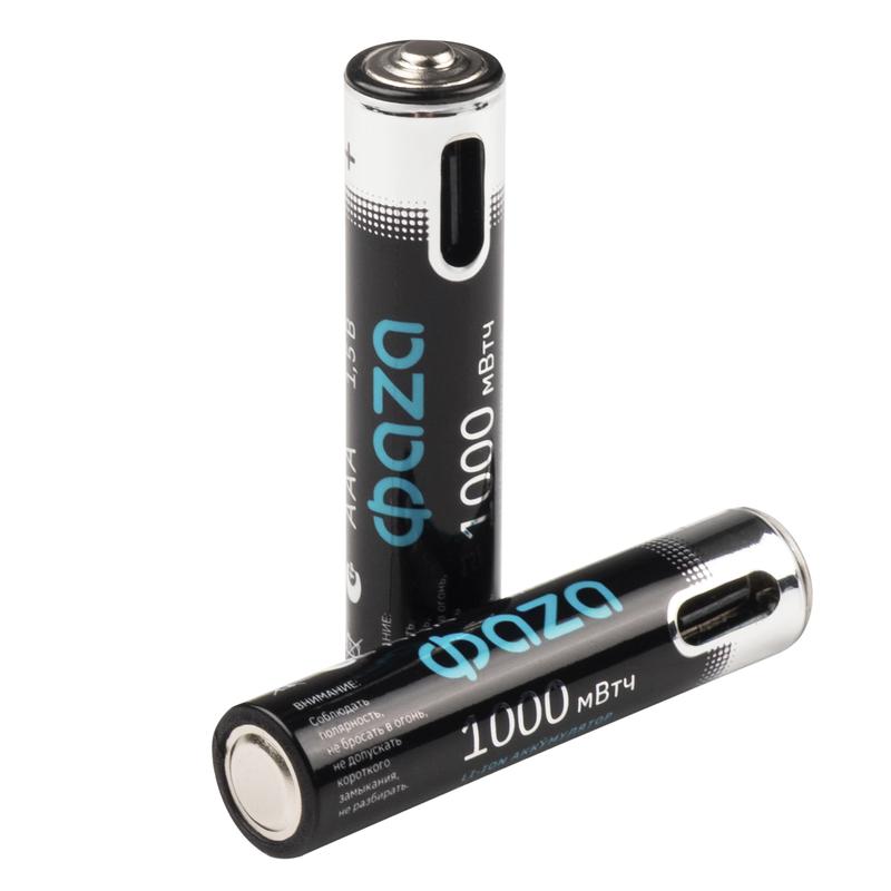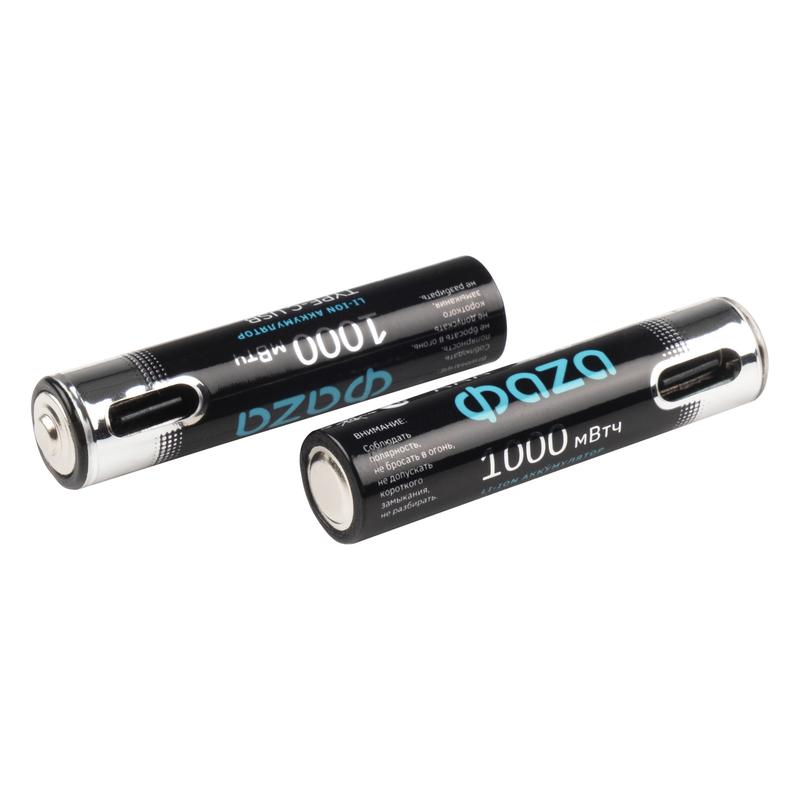 5061637 | Аккумулятор литиевый AAA 1.5В Li-Ion 1000мВт.ч 660мА.ч зарядка от Type-C шнур в комплекте BL-2 (уп.2шт) ФАZА