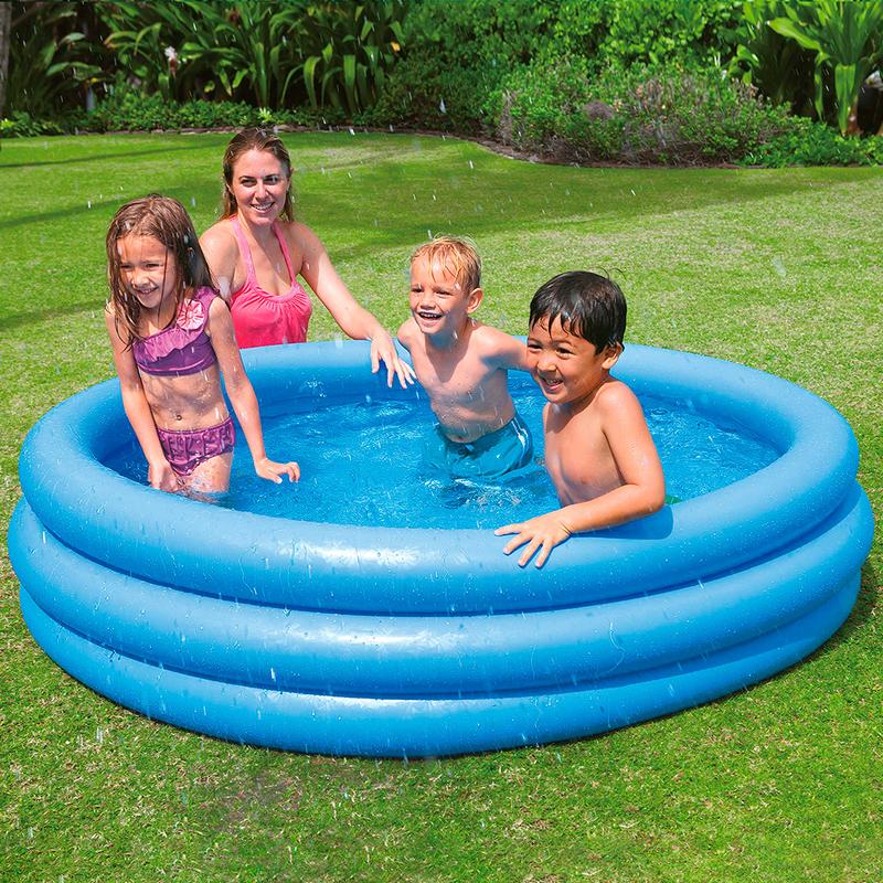 Надувной бассейн с широкими бортиками позволит детям с комфортом насладиться водными процедурами в жаркий летний день. Прочная конструкция делает бассейн устойчивым к нагрузкам, синяя цветовая гамма и закругленные формы придают изделию стильный внешний вид и позволяют гармонично вписать его в ландшафт загородного участка
