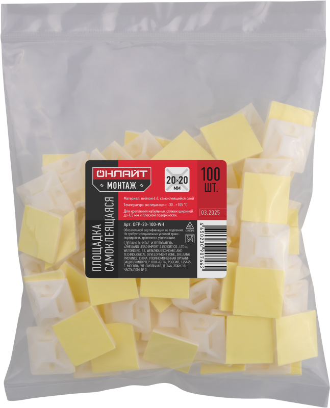 База монтажная самоклеящаяся OFP-20-100-WH 20х20 бел. (уп.100шт) ОНЛАЙТ 90746