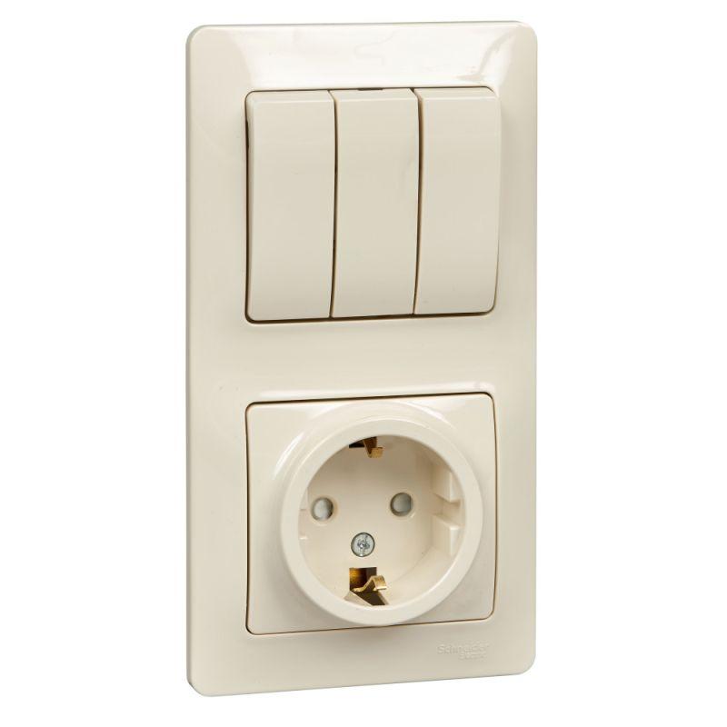 Блок комбинированный Glossa (розетка с заземл. защ. шторки + 3-кл. выкл.) беж. SE GSL000278
