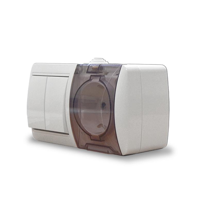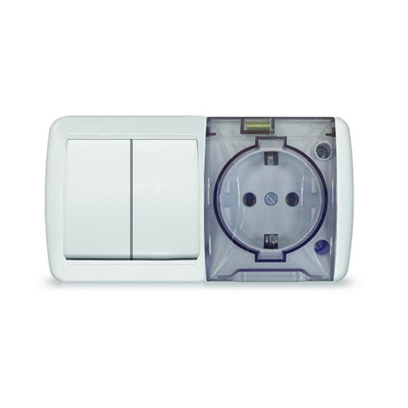 Блок ОП Клио 2-кл. выкл. 10А + розетка 1-м 16А 250В с заземл. с прозр. крышкой бел. Universal К2239