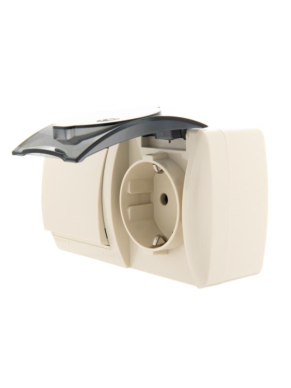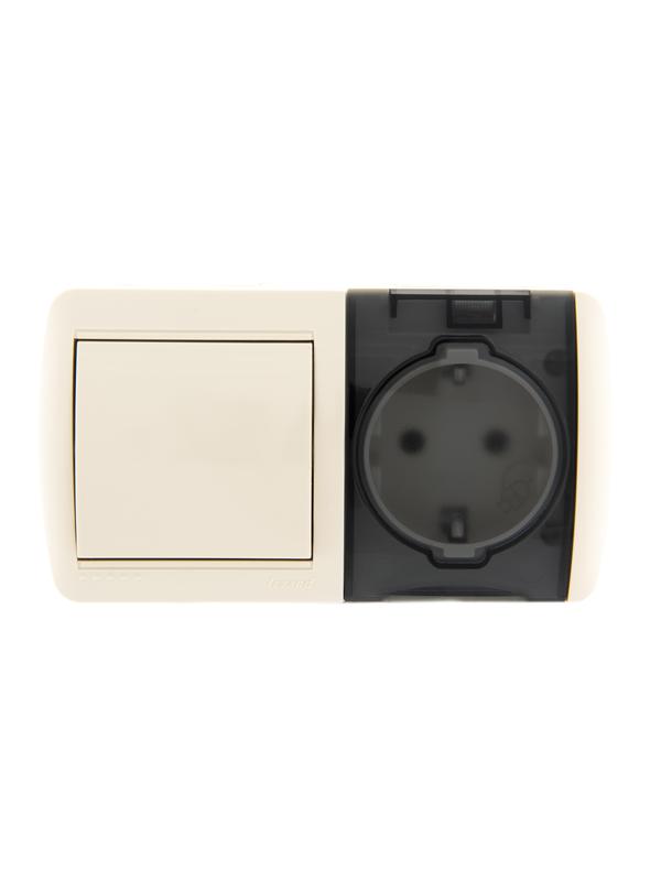 Блок ОП Nata (розетка евростандарт с заземл. с защ. крышкой + 1-кл. выкл.) IP20 крем. LEZARD 710-0300-170