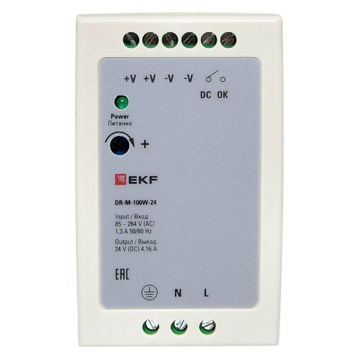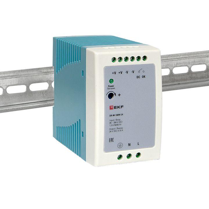 Блок питания на DIN-рейку 100Вт Uвх ~ 220В AC m Uвых - 24В DC постоянного тока EKF DR-M-100W-24