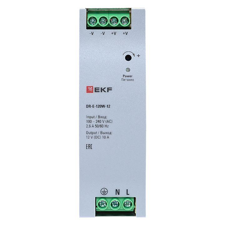 Блок питания на DIN-рейку 120Вт Uвх ~ 220В AC Uвых - 12В DC постоянного тока EKF DR-E-120W-12