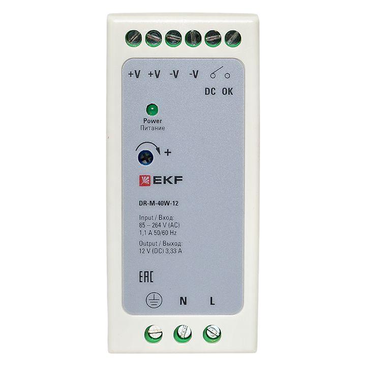 DR-M-40W-12 | Блок питания на DIN-рейку 40Вт Uвх ~ 220В AC m Uвых - 12В DC постоянного тока EKF