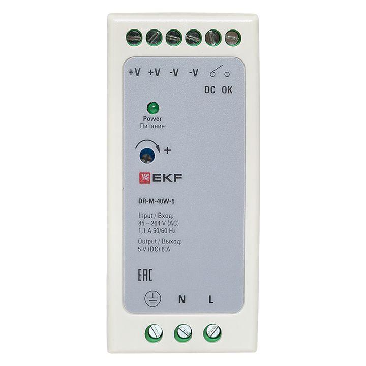 DR-M-40W-5 | Блок питания на DIN-рейку 40Вт Uвх ~ 240В AC m Uвых - 5В DC постоянного тока EKF