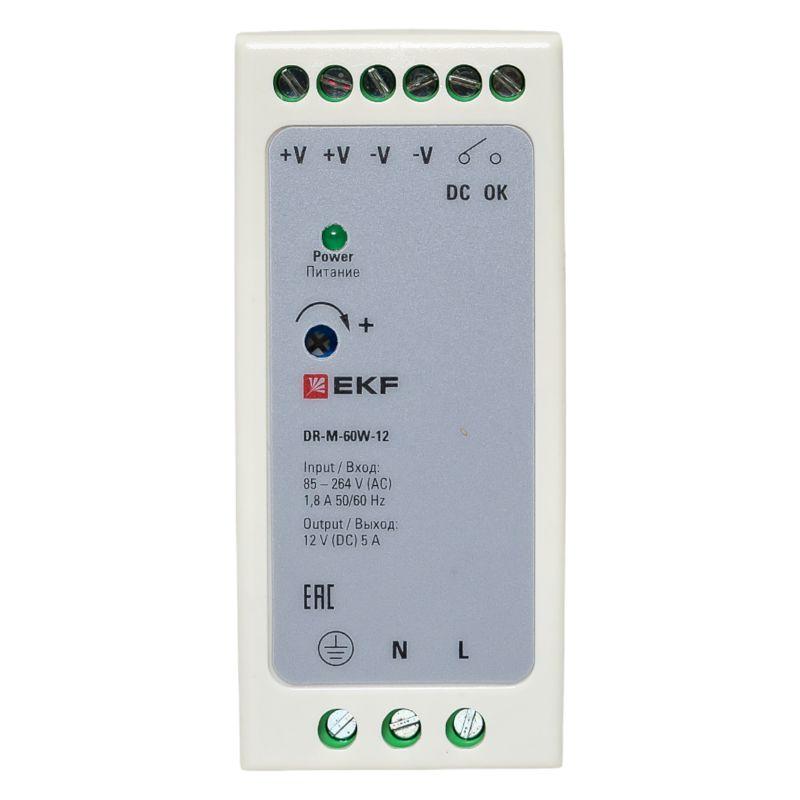 DR-M-60W-12 | Блок питания на дин рейку 60Вт Uвх 220В AC m Uвых 12В DC постоянного тока EKF
