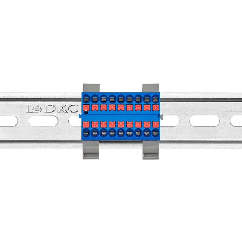 DTP1-018-04SPUB-H | Блок распределительный с горизонт. адаптером на рейку шир. 35мм зажим push-in 18 точек подключения 2.5кв.мм син. DKC