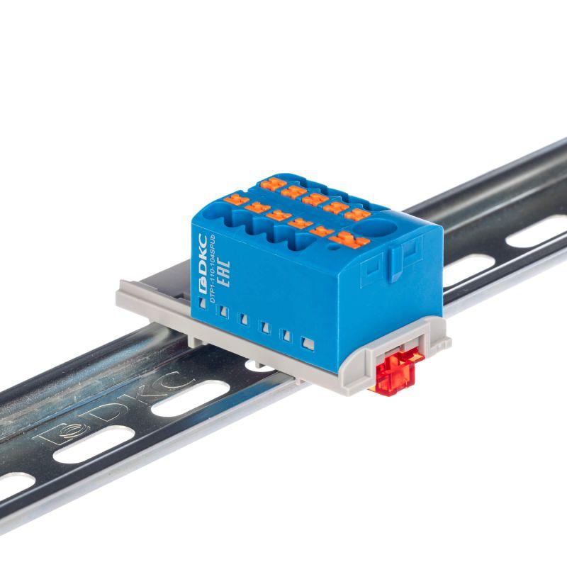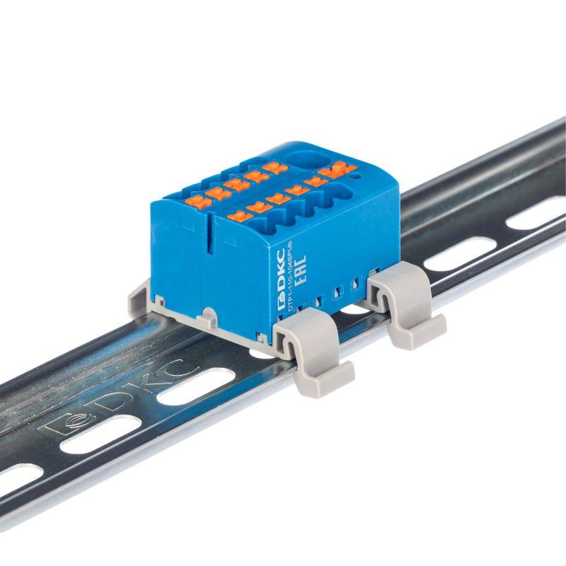 DTP1-110-104SPUB | Блок распределительный зажим push-in 1 ввод 6кв.мм 10 точек подключения 25кв.мм син. DKC