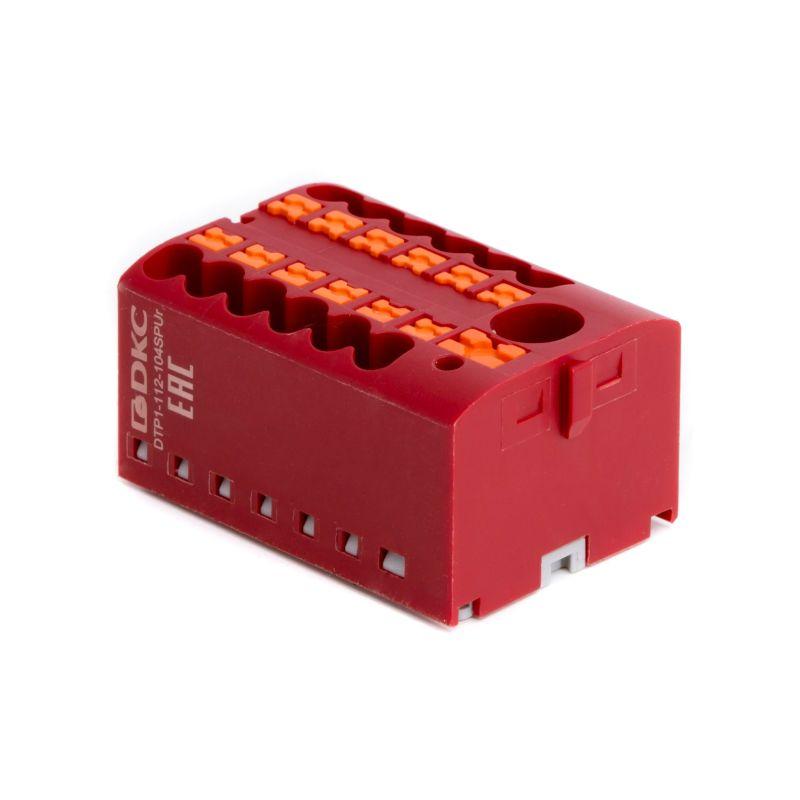 DTP1-112-104SPUR | Блок распределительный зажим push-in 1 ввод 6кв.мм 12 точек подключения 25кв.мм красн. DKC