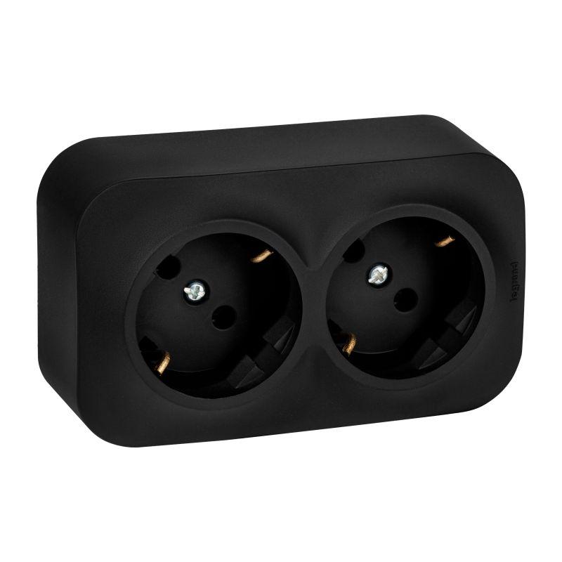 782470 | Розетка 2-м ОП Quteo 16А IP20 250В 2х2P+E с заземл. без защ. шторок черн. матов. IEK