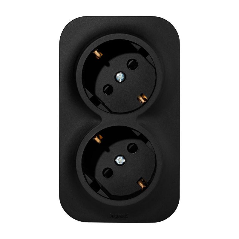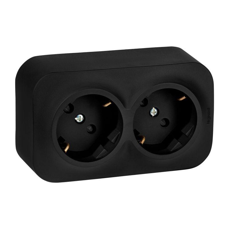 782475 | Розетка 2-м ОП Quteo 16А IP20 250В 2х2P+E с заземл. защ. шторки черн. матов. IEK