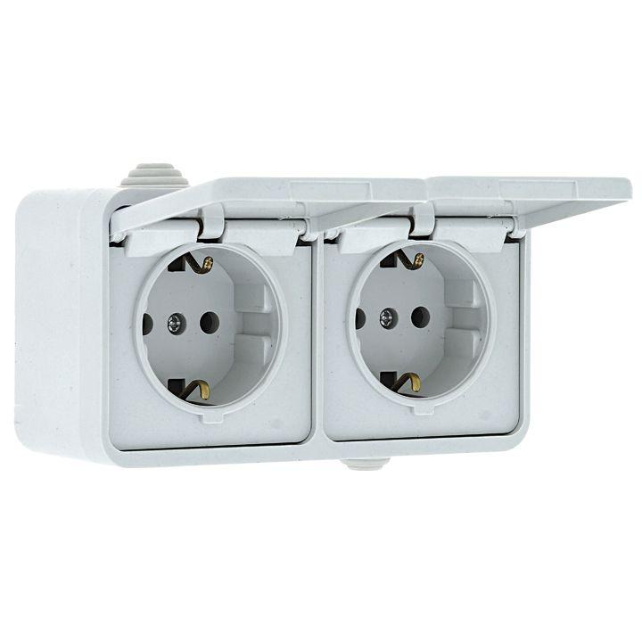 Блок розеточный 2-м ОП Прага 16А IP44 с заземл. с крышкой бел. PROxima EKF EKRR16-050-10-440