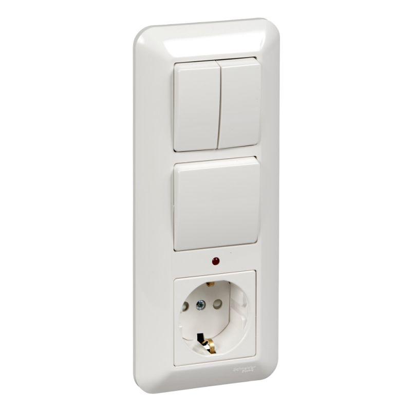 Блок комбинированный Schneider Electric ПРИМА (скрытой установки, белый) предназначен для сетей до 250 В, состоит из розетки на 16 А со шторками и с заземлением, одноклавишного выключателя и двухклавишного выключателя, оба на 6 А. - Заземляющий контакт обеспечивает дополнительную защиту от удара электрическим током. При наличии заземления электрический потенциал уходит в землю, защищая человека. - Двухклавишный выключатель позволяет управлять двумя источниками света из одной точки. - Блок удобен в применении и отлично подходит для коридора. - Оптовая упаковка, сделано в России.