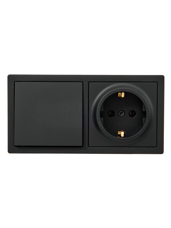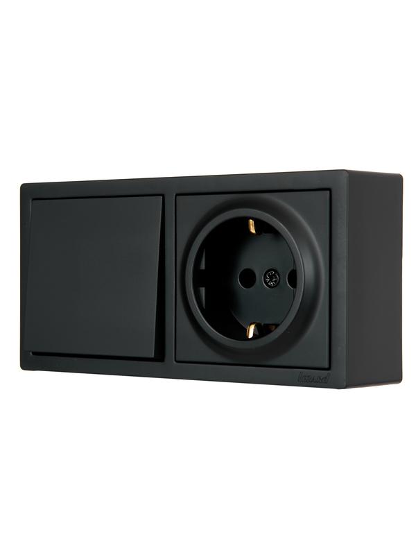 752-4200-170BAP | Блок ОП LETO (1-кл. выключатель + 1-м розетка с заземл.) горизонт. черн. бархат LEZARD