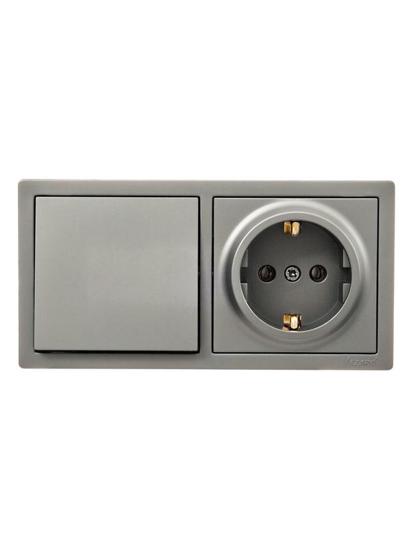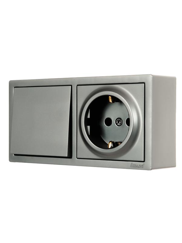 752-3500-170BAP | Блок ОП LETO (1-кл. выключатель + 1-м розетка с заземл.) горизонт. платина LEZARD