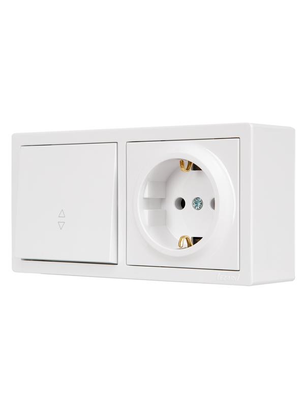 752-0200-170BVP | Блок ОП LETO (1-кл. выключатель проходной + 1-м розетка с заземл.) горизонт. бел. LEZARD