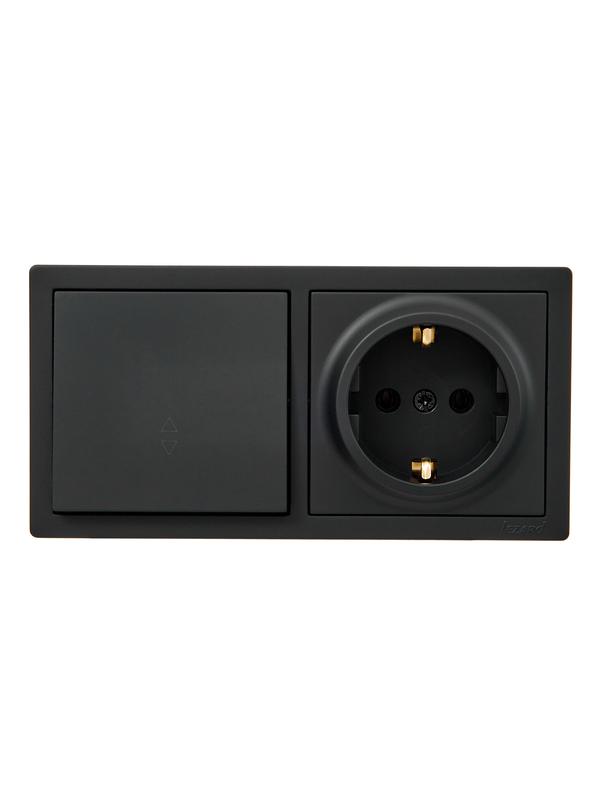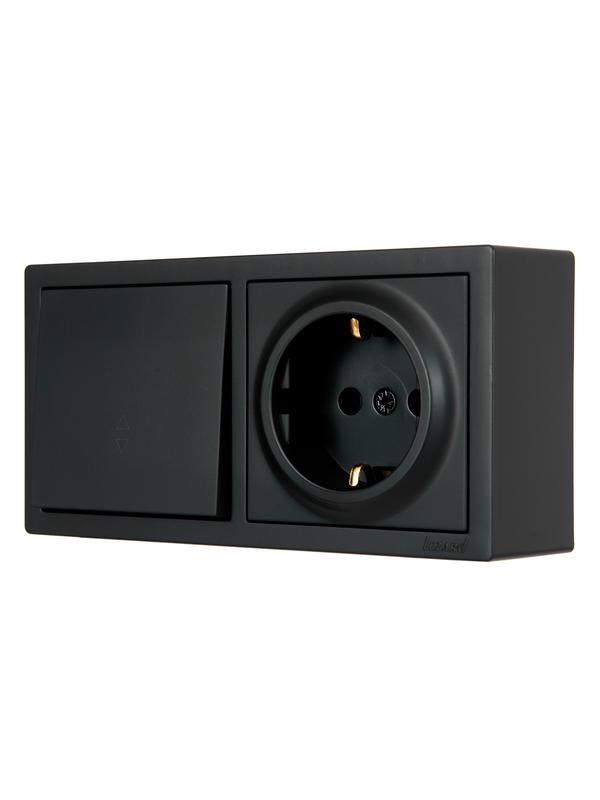 752-4200-170BVP | Блок ОП LETO (1-кл. выключатель проходной + 1-м розетка с заземл.) горизонт. черн. бархат LEZARD
