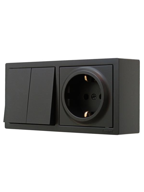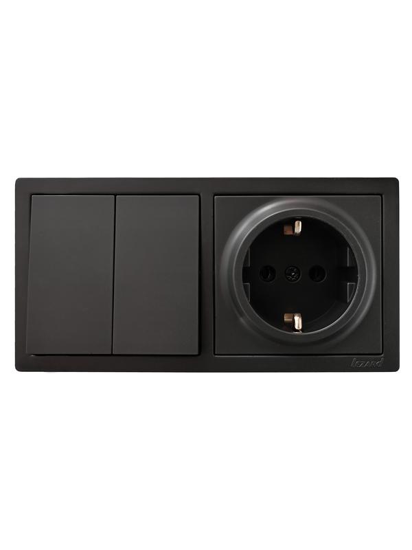 752-4200-170BKP | Блок ОП LETO (2-кл. выключатель + 1-м розетка с заземл.) горизонт. черн. бархат LEZARD
