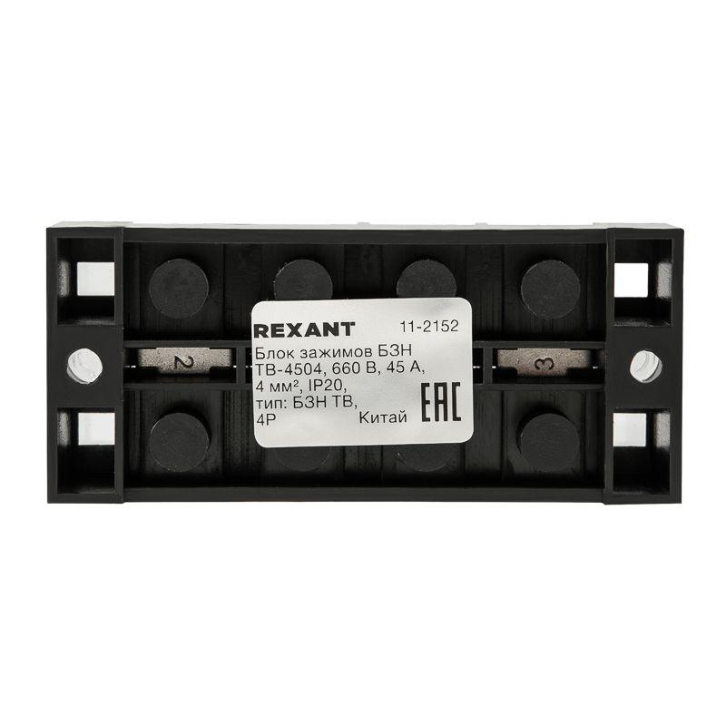 11-2152 | Блок зажимов клеммный БЗН ТВ-4504 4.0кв.мм 45А 4 пары Rexant