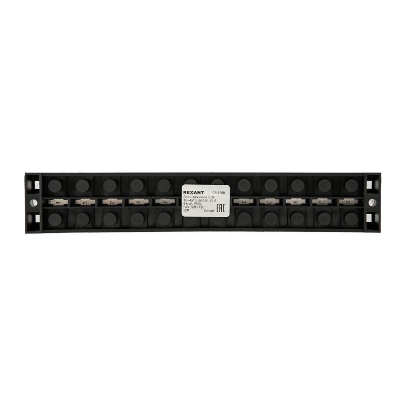 11-2158 | Блок зажимов клеммный БЗН ТВ-4512 4.0кв.мм 45А 12 пар Rexant