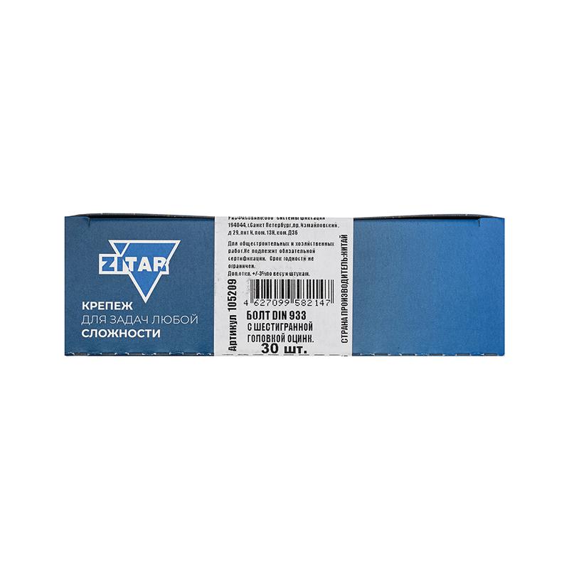 105209 | Болт с шестигранной головкой М8х30 DIN 933 оцинк. (коробка с окном) (уп.30шт) Zitar