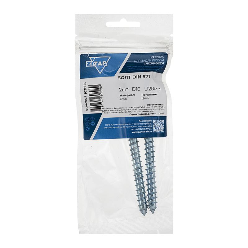 103886 | Болт сантехнический 10х120 DIN 571 оцинк. (уп.2шт) Tech-Krep/Zitar