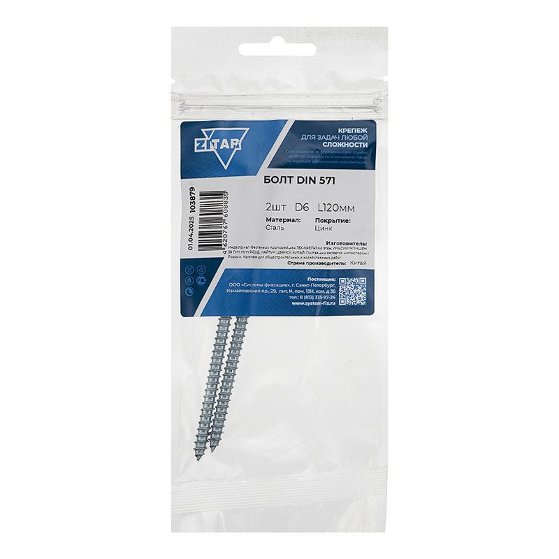 103879 | Болт сантехнический 6х120 DIN 571 оцинк. (уп.2шт) Tech-Krep/Zitar