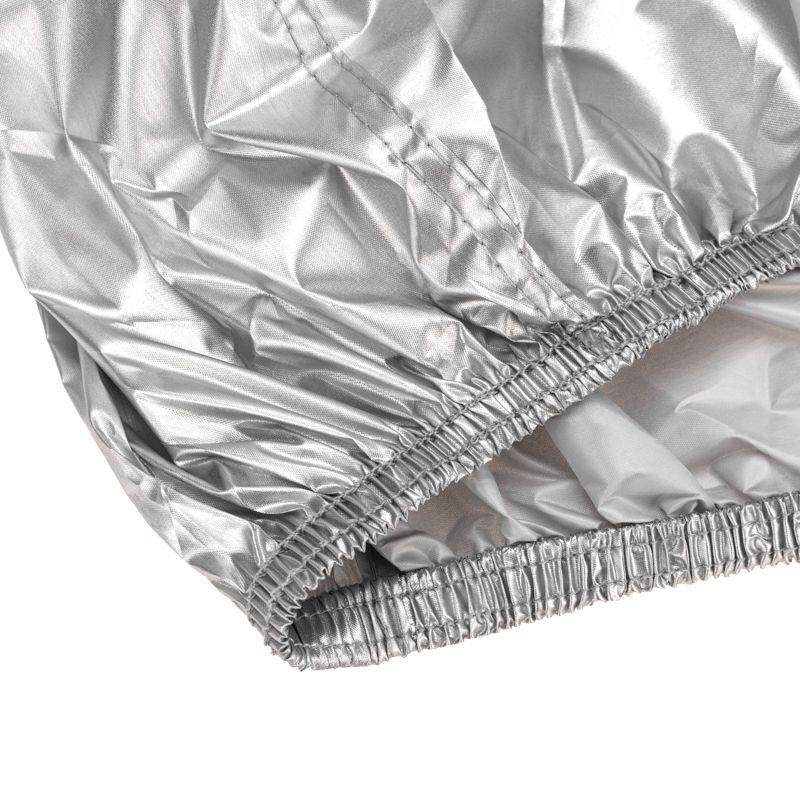 Чехол изготовлен из прочной водонепроницаемой ткани, что обеспечивает надежную защиту от дождя, снега, пыли и грязи. Также ткань отражает ультрафиолетовое излучение, что защищает краску и пластиковые детали транспортного средства от воздействия солнечных лучей.