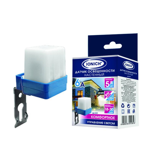 2197 | Датчик освещенности настенный 6А 8-30 Lux бел. IONICH