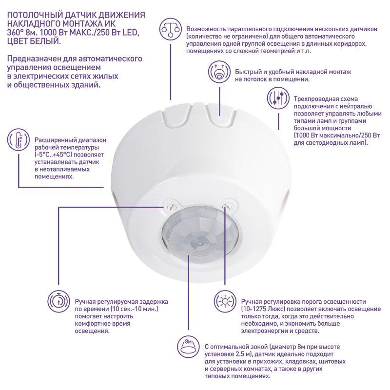 Товар Датчик движения потолочный Lighting Management PIR 360рад. 2.5м IP20 для ОП ~240В 1000Вт/250Вт бел. Leg 048949 доступен с доставкой по г. Санкт-Петербург, Ленинградской области и территории РФ, или самовывозом.