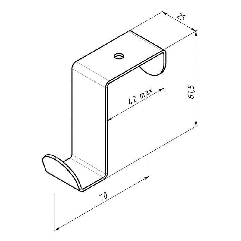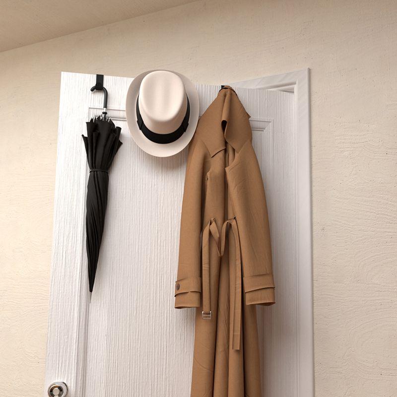 Изделие предусматривает возможность размещения повседневной одежды, курток, сумок, зонтов и т.д. Держатель совместим со стандартными дверьми, максимальная ширина которых не превышает 42 мм.