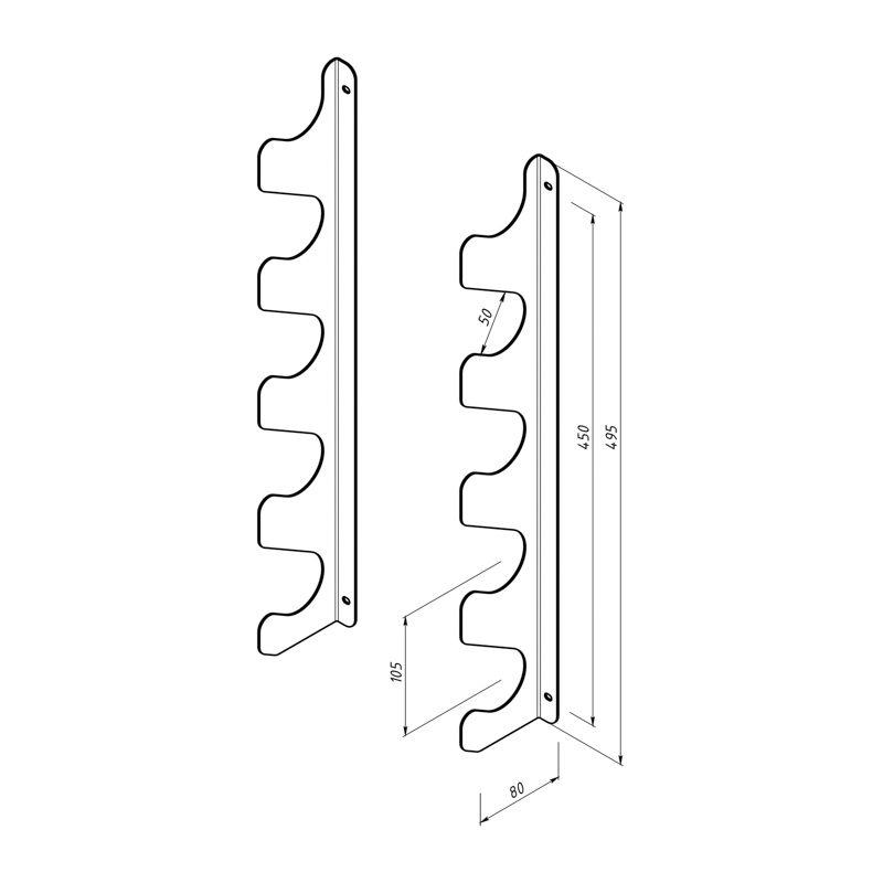 Изделие рассчитано на хранение пяти предметов одновременно. Конструкция обеспечивает необходимое отдаление от стены, что позволяет разместить даже громоздкие изделия.