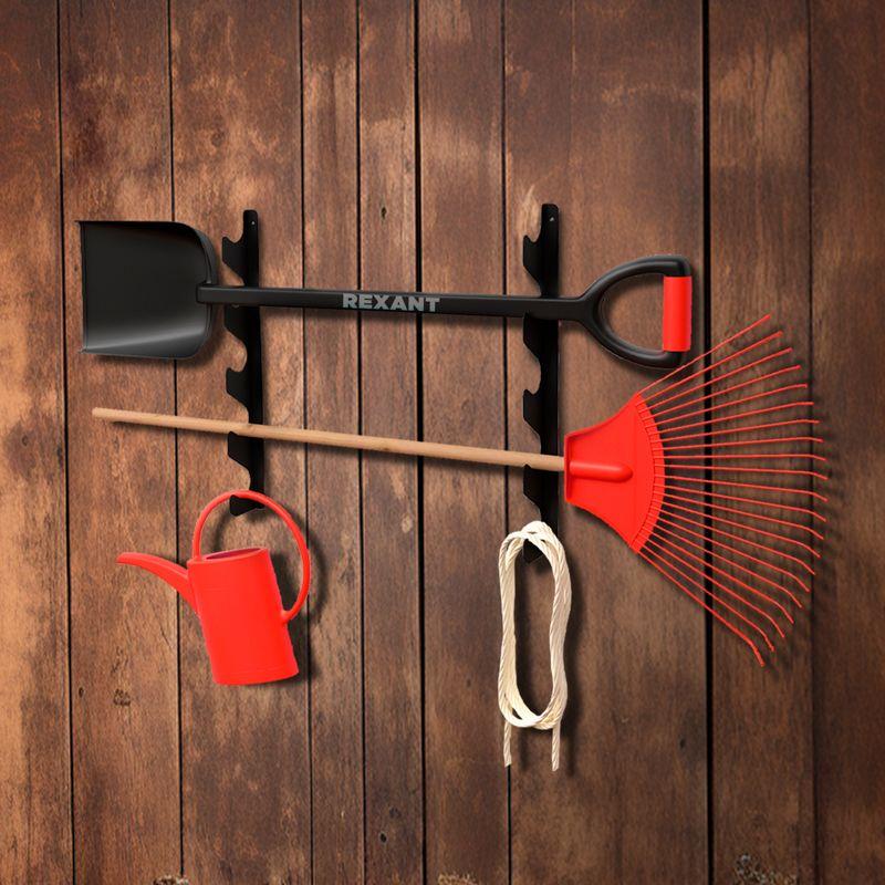 Держатель для хранения садового инвентаря настенный черн. (уп.1шт) Rexant 38-0686