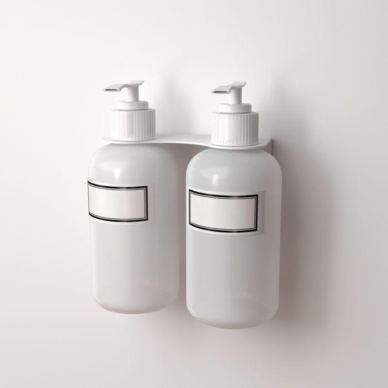 Держатель предназначен для установки двух флаконов с жидким мылом, шампунем или любым другим средством.
