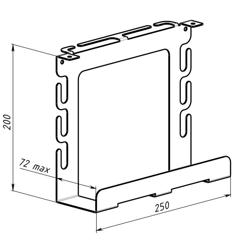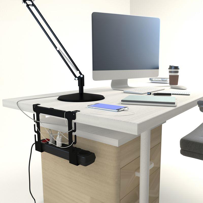 Изделие позволяет зафиксировать сетевой фильтр и упорядочить расположение всех кабелей, шнуров, разветвителей питания и т. д.