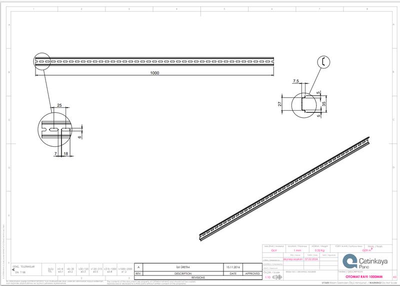 CP4983 | DIN-рейка перфорированная 35х7.5мм L1000 оцинк.Cetinkaya Pano