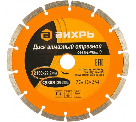 Диск отрезной алмазный сегментный 180х22.2мм сухая резка Вихрь 73/10/3/4