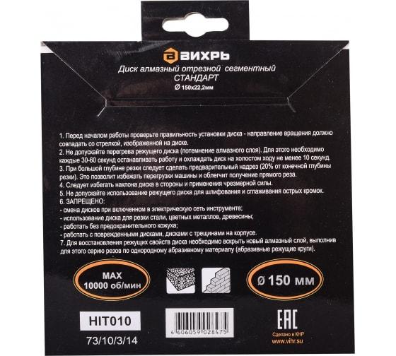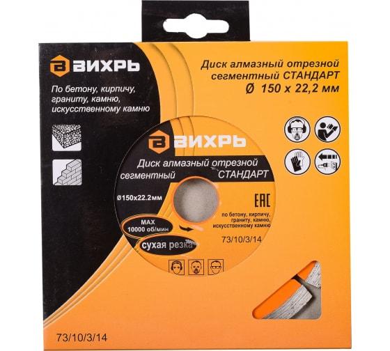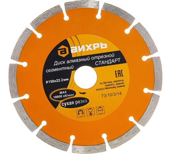 Диск отрезной алмазный сегментный СТАНДАРТ 150х22.2мм сухая резка Вихрь 73/10/3/14