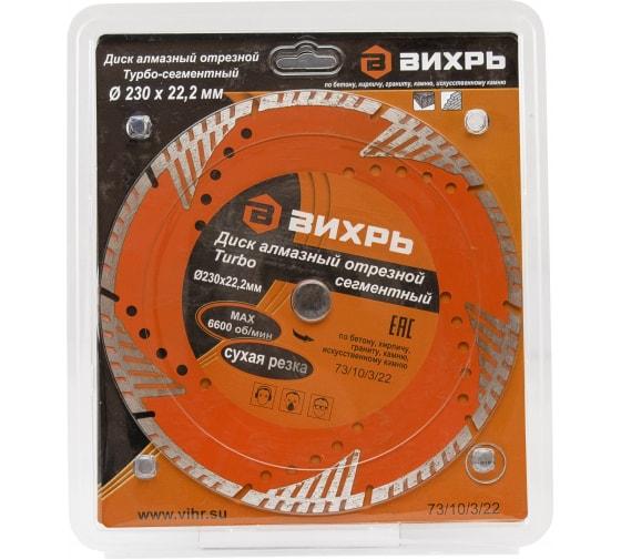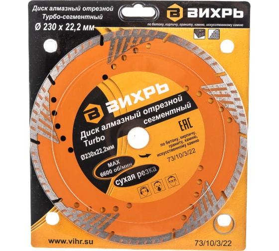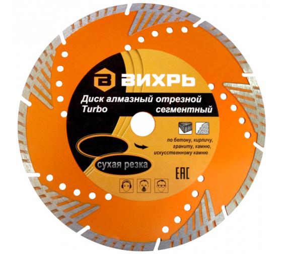 Диск отрезной алмазный сегментный Турбо 230х22.2мм сухая резка Вихрь 73/10/3/22