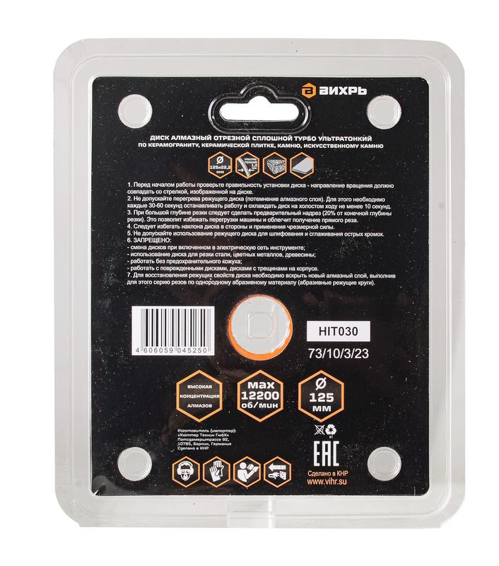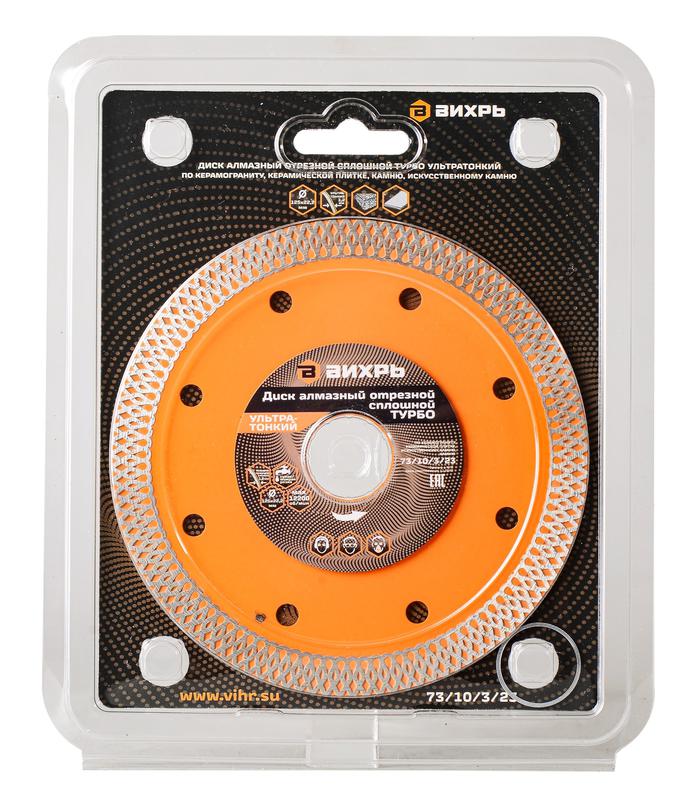 Диск алмазный сплошной тонкий 125х22.2мм сухая и влажная резка Вихрь 73/10/3/23