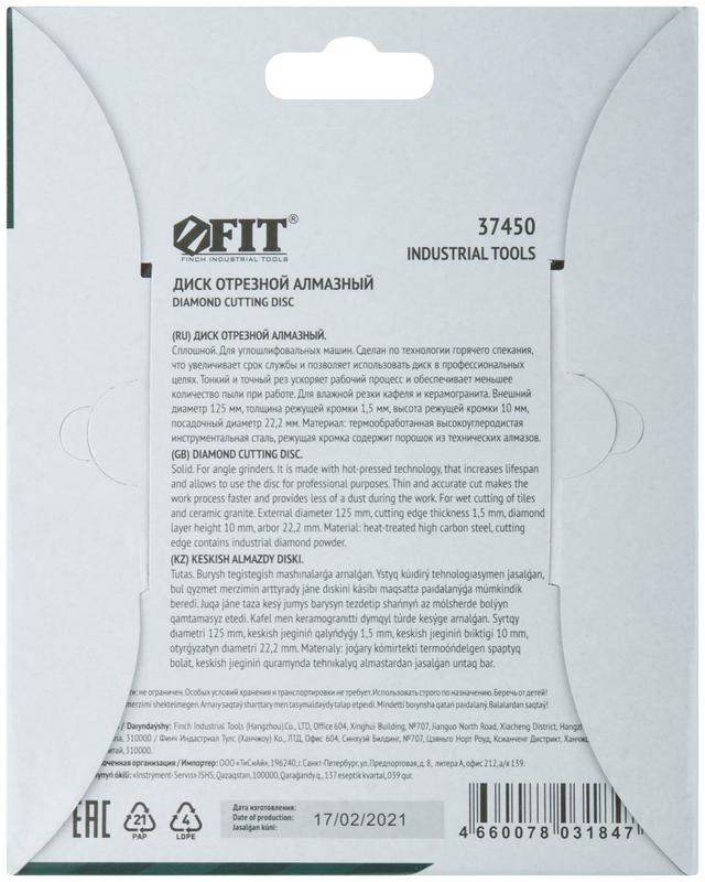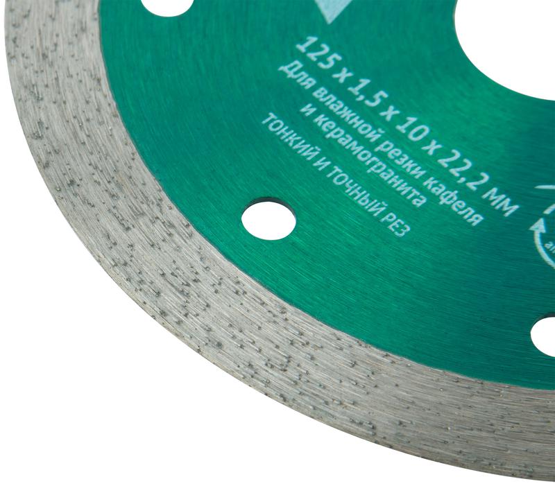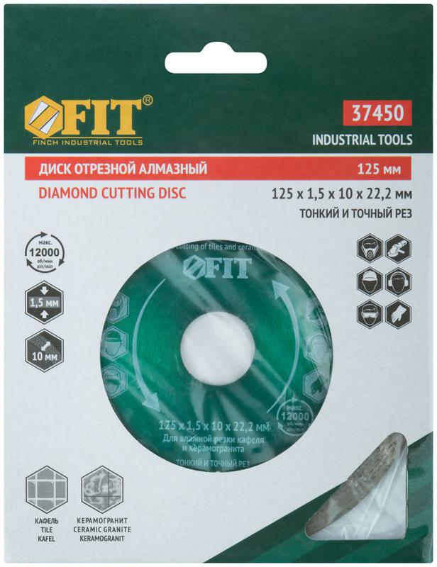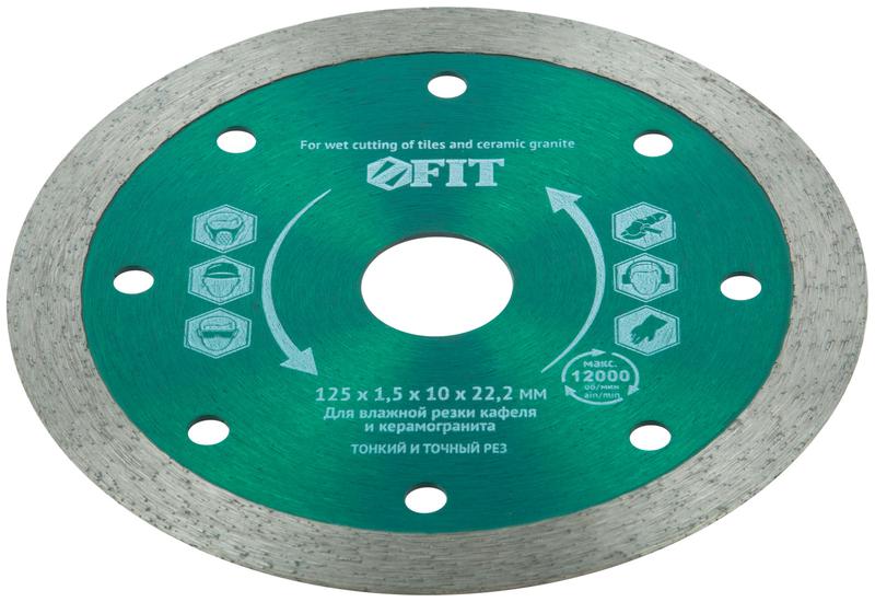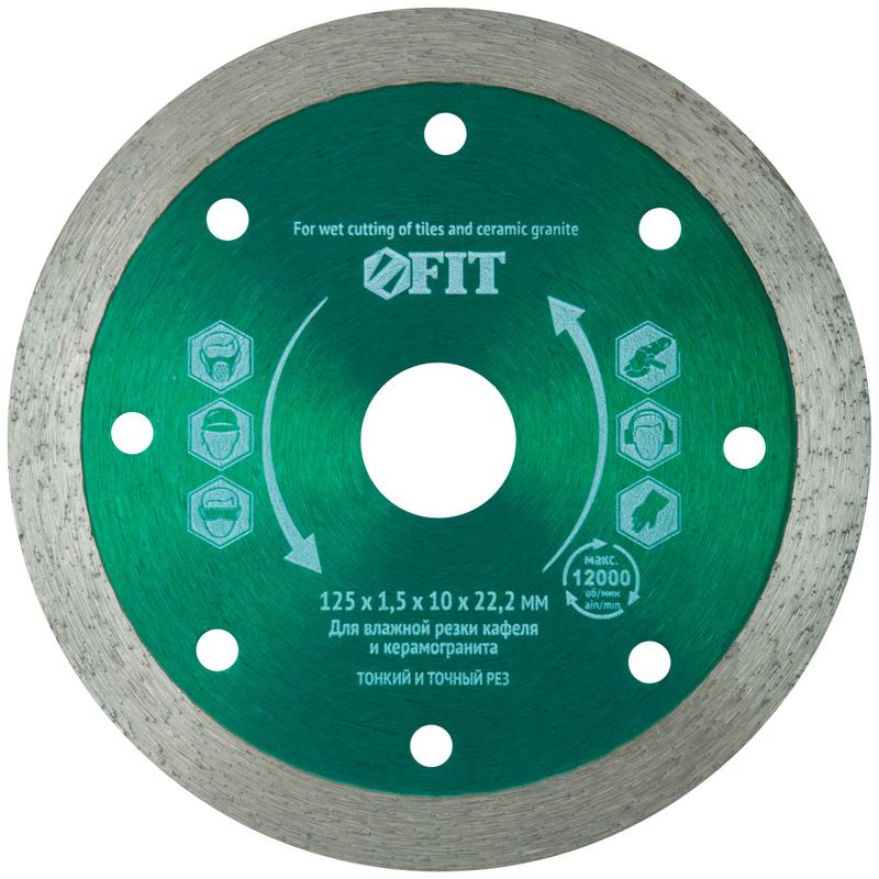 Диск отрезной алмазный сплошной (влажная резка) для кафеля и керамогранита 125х1.5х10х22.2мм FIT 37450