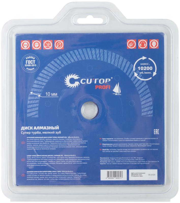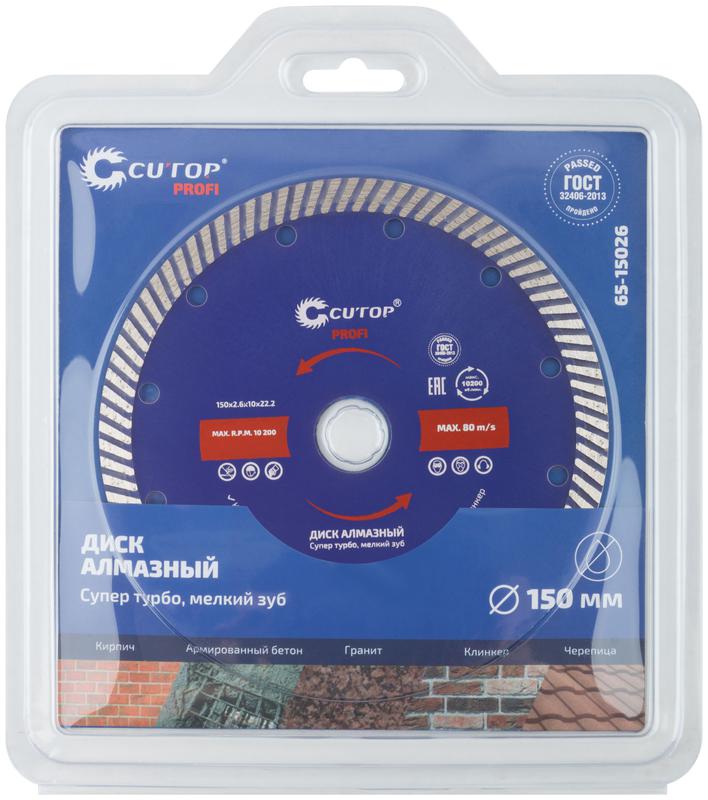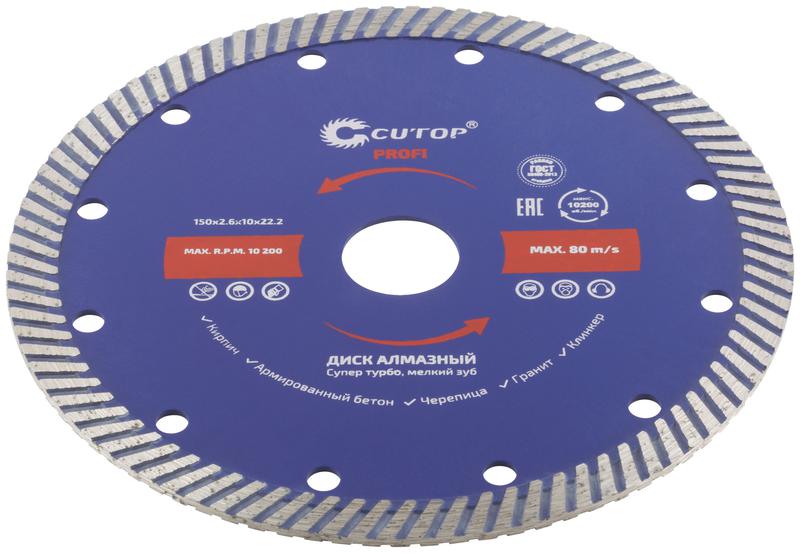 Диск отрезной алмазный сверхтонкий супер-турбо мелкий зуб 150х2.6х10х22.2мм Cutop 65-15026