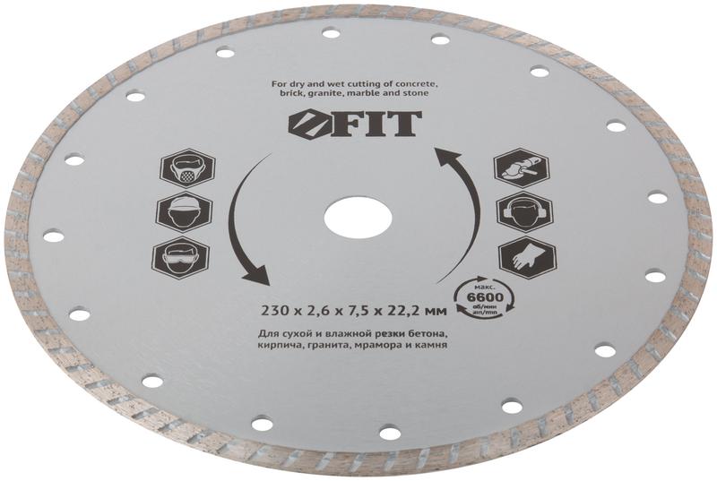 Диск отрезной алмазный "турбо" (сухая и влажная резка) 230х2.8х7.5х22.2мм FIT 37477