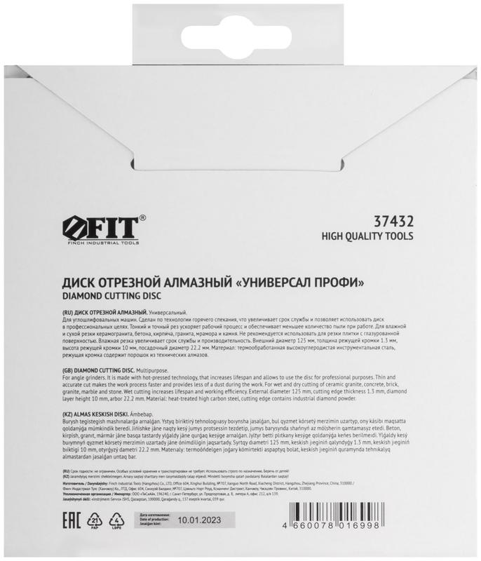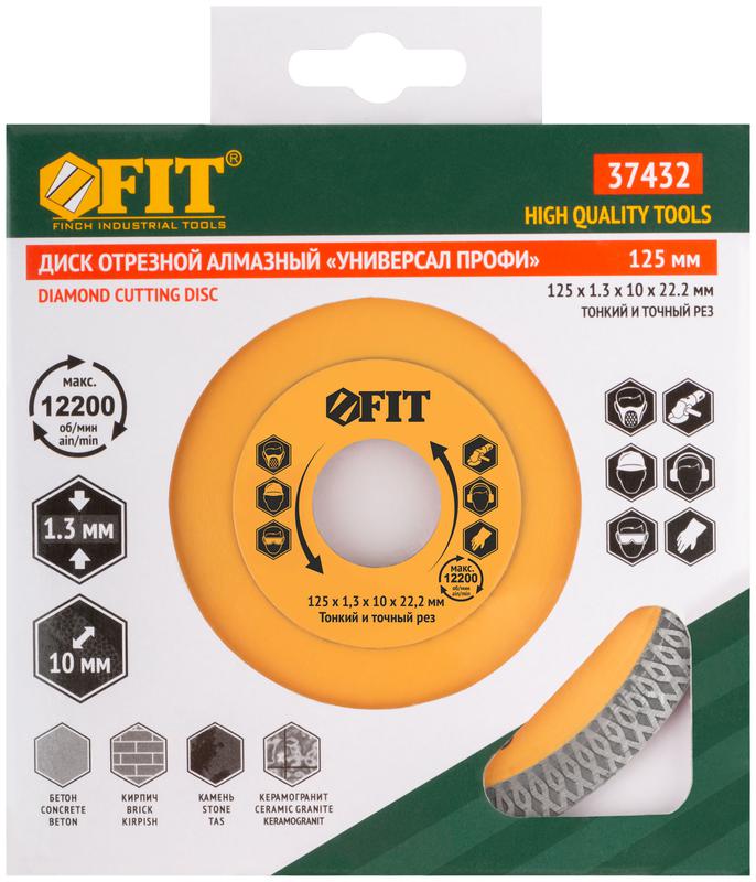 Диск отрезной алмазный универсальный Профи (сухая и влажная резка) 125х1.3х10х22.2мм FIT 37432