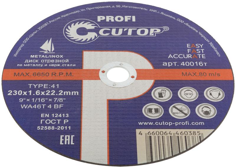 Диск отрезной по металлу и нержавеющей стали Profi Т41-230х1.6х22.2мм Cutop 40016т