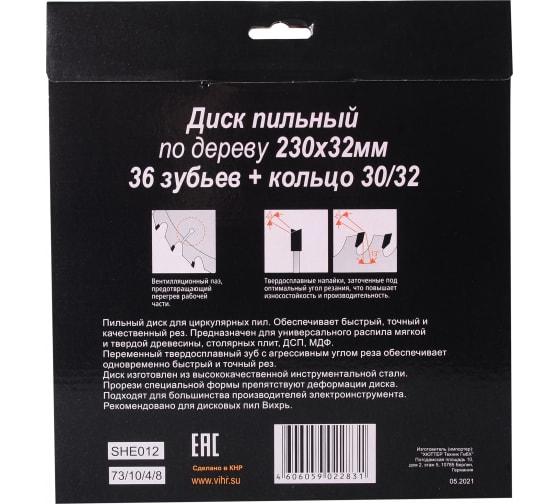 Диск пильный по дереву 230х32мм 36зуб. + кольцо 30/32 Вихрь 73/10/4/8