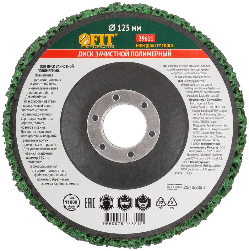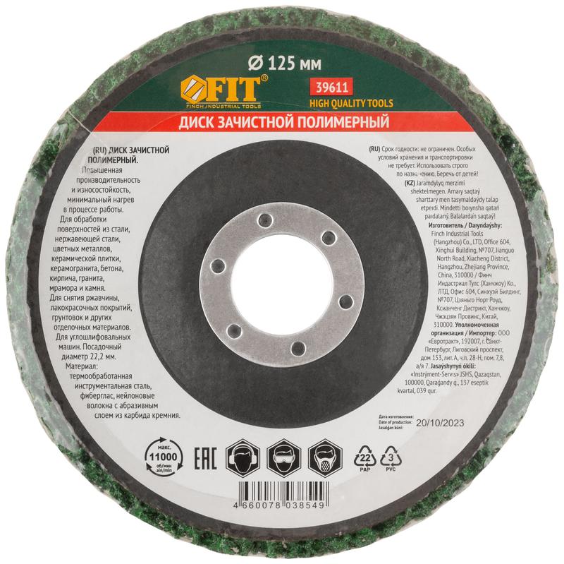 Диск зачистной полимерный посадочный d22.2мм 125мм зел. FIT 39611