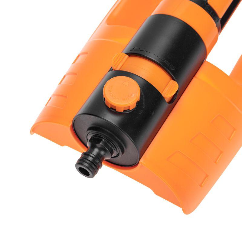 Надежное и герметичное крепление шланга к дождевателю осуществляется при помощи универсального соединителя, расположенного на корпусе устройства.