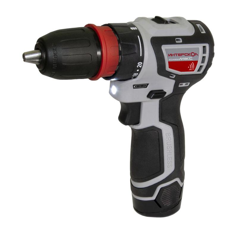 Дрель-шуруповерт акуумуляторная бесщеточн. ДА-10/12В 36 КомбиМАКС (Li-ion сумка 2 аккум. 2А.ч 4 насадки) ИНТЕРСКОЛ 687.2.2.78